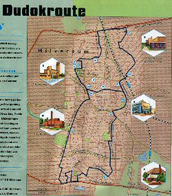 Route 49, Dudokroute, 9 km, City walk through the town of Hilversum, especially for those interested in architecture. The city of Hilversum is renowned for the many districts and building designed by the famous architect and city planner Dudok. A good place to start on Sunday is the town hall (free parking in the park on Sunday) and you might consider the guided tour 2 o’clock Sunday afternoon in the ‘Dudok Centrum’. On weekdays the parking opposite the railway station is a good option. Obviously an easy trail, well marked… Remember, if you pick up the leaflet describing the Dudokroute in the ‘Dudok Centrum’… this does NOT show the same route as described in the ANWB-book…