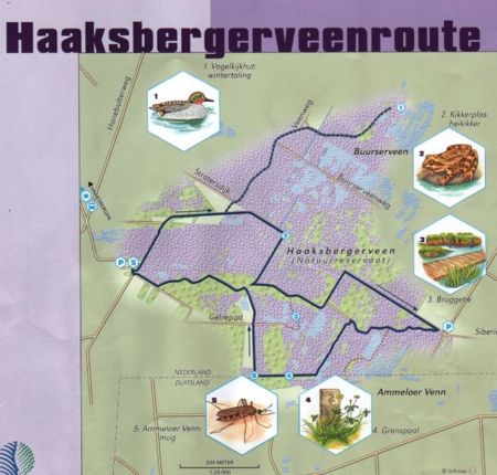 July 12, 2007, Haaksbergen, Route 23; Haaksbergerveenroute 8 km. Nice trail, impressive nature… can be extremely wet and muddy. That’s what you get hiking through ancient moor country where you can literally smell the peat. The route takes you partially along the German border and the wildlife is abundant… There are a lot of opportunities to extend your route, even into the German ‘Naturschutzgebiet’ adjacent to this area.
