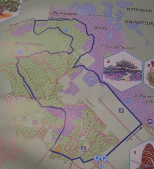December 30, 2007, Anserdennenroute (National Park Dwingelderveld), Ruinen. Route 16, 7 km (not 6). Great trail, starting at the visitors center Dwingelderveld. Worth a visit by the way… Hardly any tarmac, lots of sand and mud 🙂 and especially enjoyable due to the lack of highway or traffic noise i.e. the silence. Unfortunately very uncommon during walks in the Netherlands…As we like to keep the best for the last moment we followed the track clockwise (opposite to the route shown on the map, but following the white markers en-route). We appreciate open scenery more than forest and the view over the moors is spectacular… Note: it’s a popular area, pick the right time of day, day of the week and time of year to make the most of it…