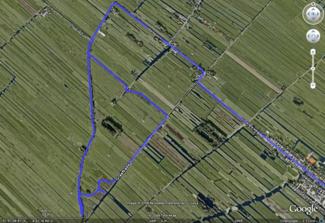 August 10 2008, Plagroute, GPS Tracks.nl, 6 km. Another great hike found via GPSTracks.nl, especially if you’re interest in landscaping… Several meters below sea-level rich farmland full of manure is scraped away and nature is given a chance to develop on it’s own in relatively ‘poor soil’. The results are impressive; plants, trees and flowers develop into a divers and colorful swamp… Great to compare the (outdated) Google Earth Arial photographs with the situation today. Worth wile, although a little bit short for our taste… However, recommended for a Sunday afternoon stroll… The route is well marked (poles with blue tops) and you better not stray from the path too far to avoid wet feet… or worse… More info on nature development in this province Zuid Hollands Lanschap