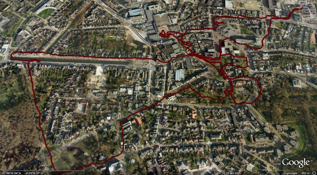 September 18 2008, ‘Stad der Paleizenroute route’ (near Assen), route 11, 5 km… (6.5 km from the free parking place). City walk through the city famous for the Dutch TT (annual motorbike GP). Surprising history and extraordinary buildings once you pay attention to it. Get a route description at the local tourist office to provide you with more insight to make this walk through this friendly town more interesting.
