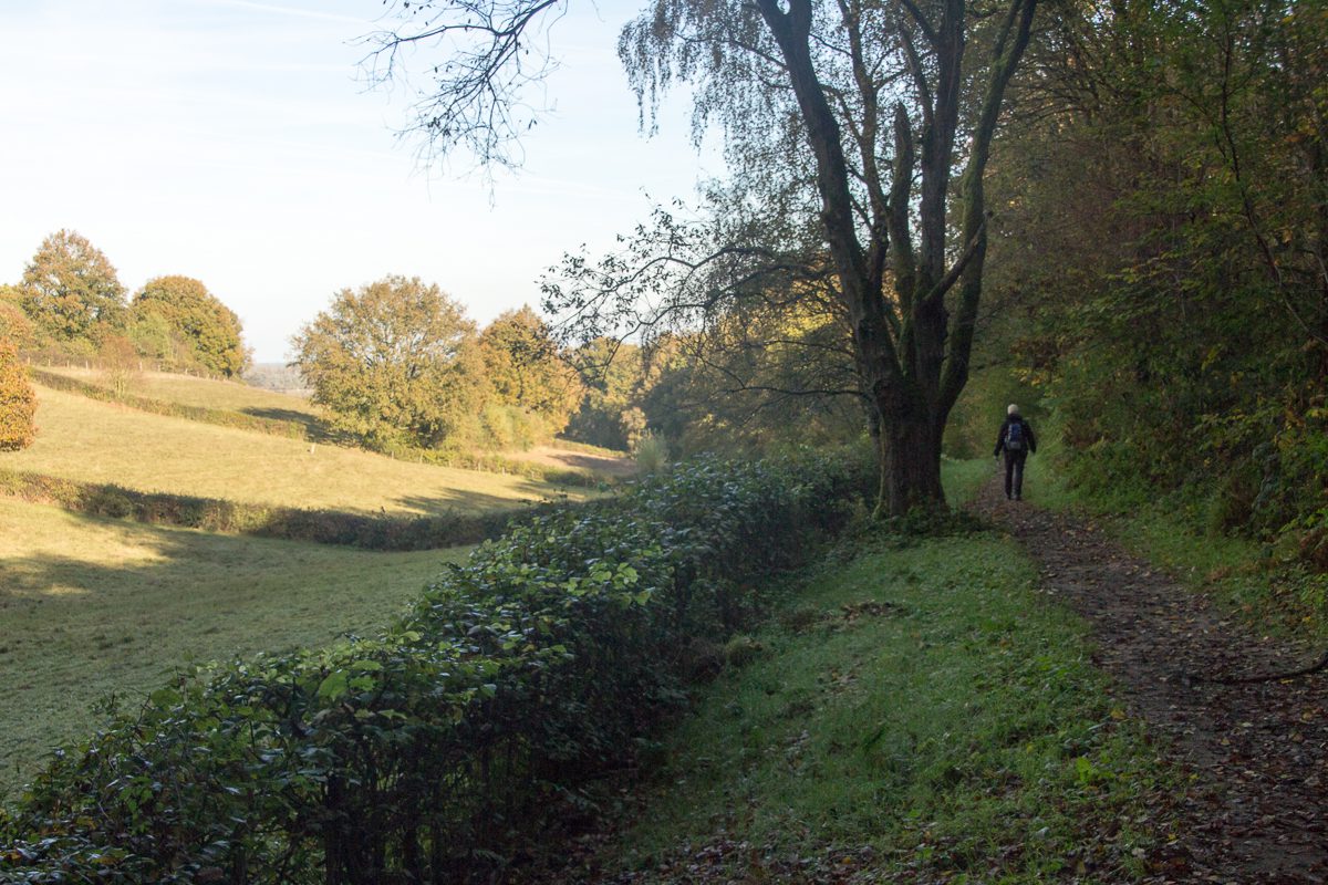 Thursday 31 October 2012; Duivelsbergroute (“Devils’Mountain route) in Berg en Dal, in the east of the Netherlands, just touching the border with Germany; ‘wandelboek’ route 40, 9 km according to the book, our GPS told us 7.4 km. A very uncharacteristic hike for the Netherlands, considering the height of the hills and the steep climbs. Situated just west of the German city of Kleve this is indeed an interesting walk. Prepare for some steep climbs and descents and proper footwear is recommended. Note that you can extend the hike up to 18 km by following the green signposts, promising some spectacular views. Definitely recommended, especially if you want to escape the flat landscapes of the Netherlands or get some practice before you really go up to serious hills and mountains