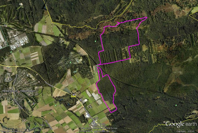 Thursday 3 November 2011. route 96 ‘Wandelboek’, 9 km, “Paardengat” and “Reeweg”routes; South of Roermond (Limburg). Started at the parking of the (closed) old railway track north east of the visitor’s centre “De Meinweg” which was closed (off season) as well… Too bad, looked great from the outside…Despite some light rain, nice hike, varied terrain; forest, moors, fields and water… Geologically interesting as there runs a clearly recognizable fault through the landscape.