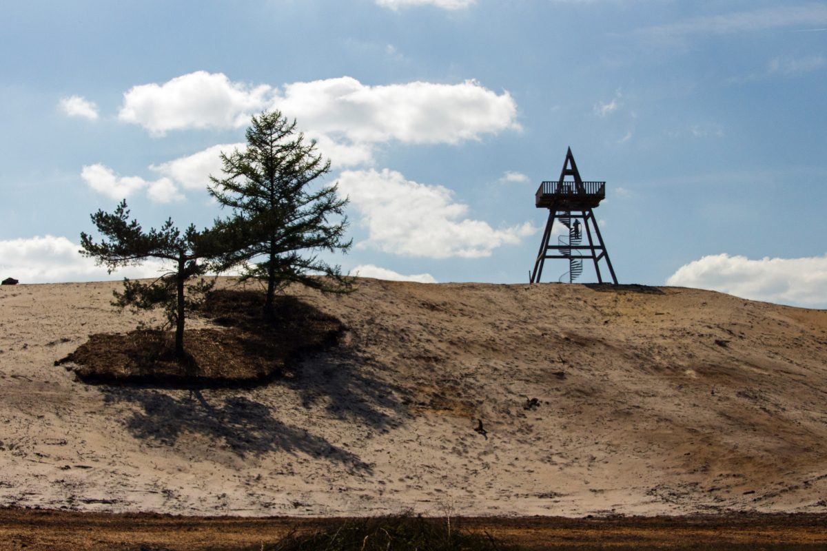 Sunday 5 May 2013, more or less the “Bergerbos route” (now replaced by the “Broedersbos route”), east of Boxmeer near Afferden): Wandelrouteboek route 90; 5 kilometers. Combined with the “Ullingse bergenroute” (search if interested) which is in the same area both hikes provide you with 12 enjoyable kilometers in total. Like is ‘peer hike’ 10km to the west a varied and easy trail. This area is redeveloped as ‘natural sight’, new, well marked hikes are being made available (we used the blue signposts). Although there are similarities with the “Ullingse bergenroute” (forest, sand-dunes) this hike takes you through lightly accented terrain, there are more and large fens and there is very nice observations tower which – on a clear day – offers you some great views.