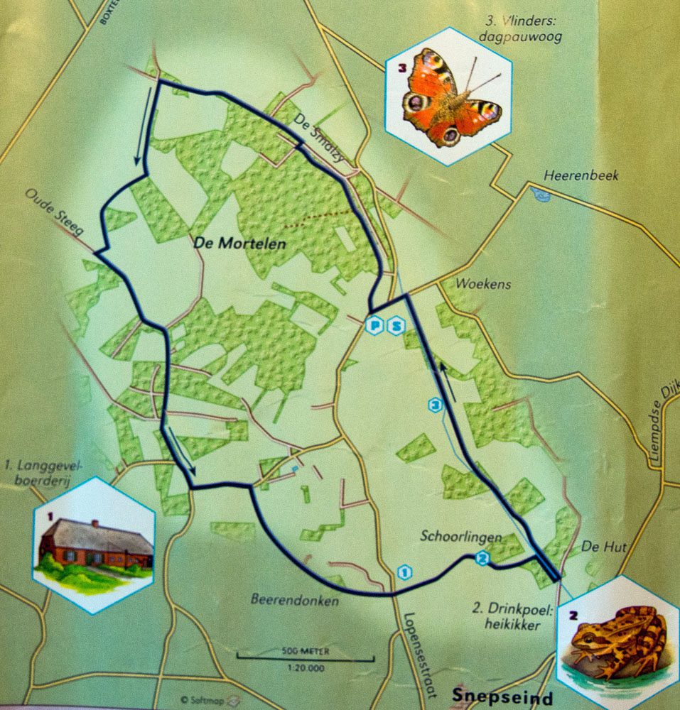 Sunday, 19 October 2014, “Mortelenroute” in the Province of Noord Brabant, near Oirschot, Wandelroute boek nr. 82; approximately 6 kilometers. Easy hike near Oirschot where you will find many other routes for hiking or bicycling. The route takes you through typical (100 years old) varied ‘Brabant’ scenery which in the old day was shaped by many small farms trying to survive on these poor grounds (´kamertjeslandschap´) and hundred of drinking pools. The groundwater level currently being raised to give the original vegetation a chance to return. This area is famous for a wide variety of butterflies in the summer as well. Route is well marked (basically a combination of the ‘yellow’ and ‘red’ route you find on the maps available at several locations. Note however the soil pretty much is dense clay which provides poor drainage for rainwater….(high) waterproof shoes or boots recommended….