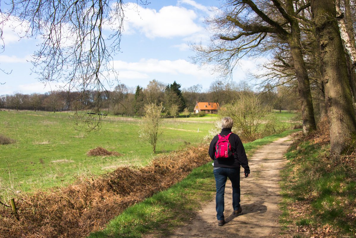 Varied scenery; cultured forest and typical agricultural landscapes… easy going, bit too much tarmac for our taste (hence our detours) but the roads are pretty quiet so it’s not a real issue. An exceptionally warm and bright Easter-day with temperatures soaring up to 25 C! Starting point is near Café de Vroolijke Frans…